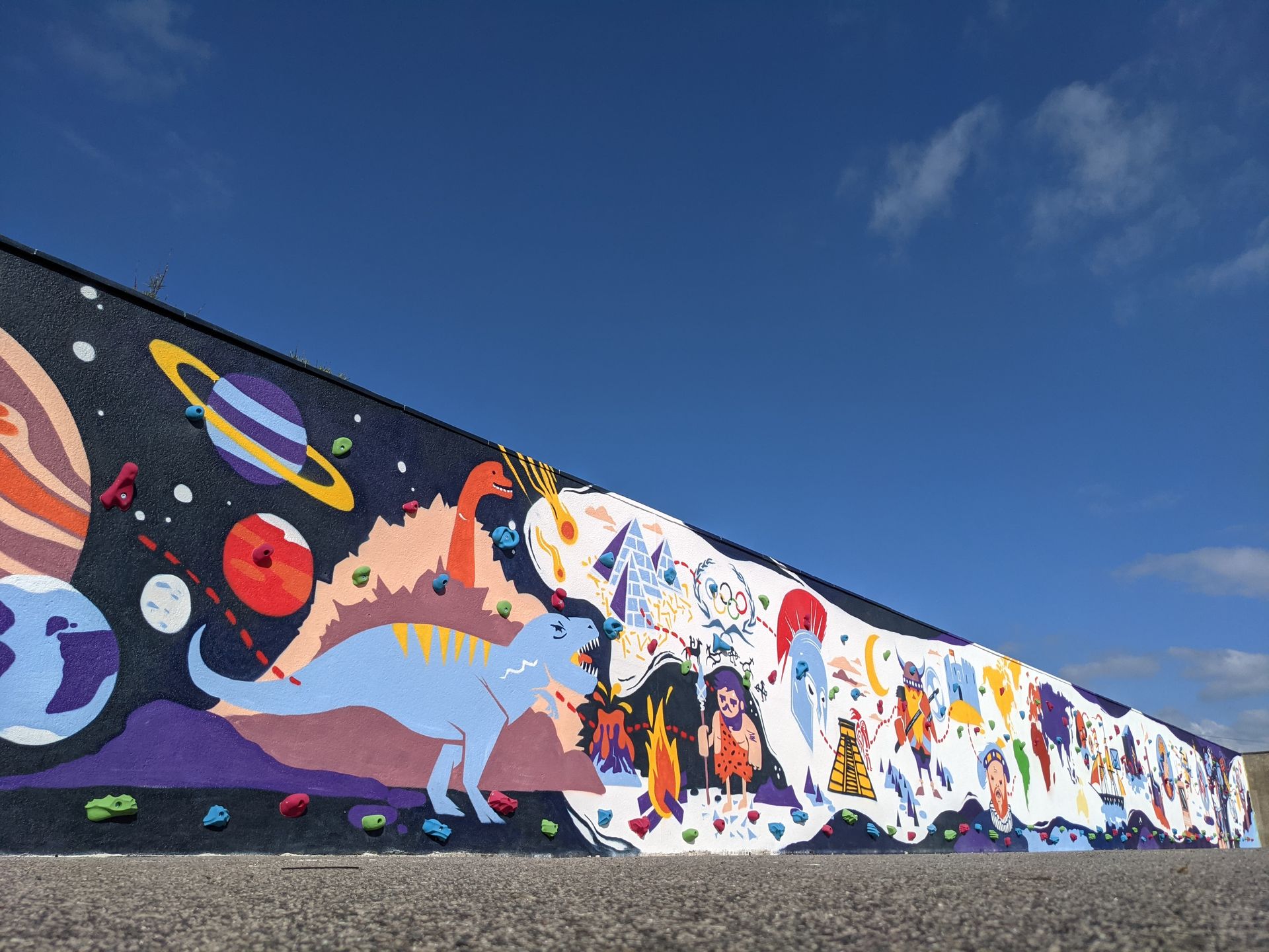 A massive climbing mural that features significant historical events, meticulously designed by our talented team, captures the essence of our world's rich past and brings it to life in an engaging way. Each detail of the mural has been thoughtfully crafted to highlight pivotal moments that have shaped history, making it not just a visual spectacle but also an educational experience. History has never been this exciting.