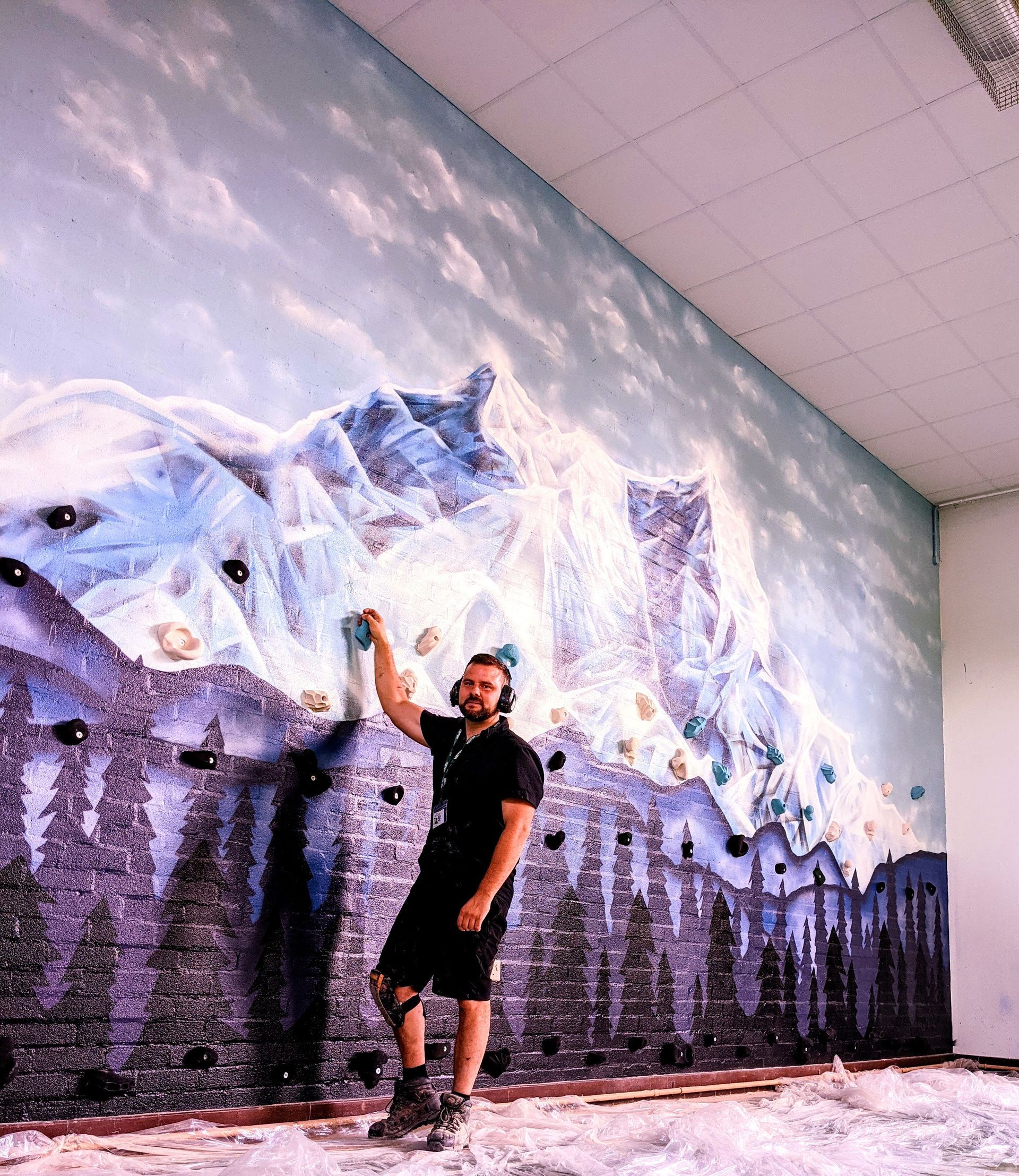 This indoor Traverse wall adorned with a breathtaking mountain mural made a remarkable impression on the school. As a result of our exceptional feedback, we proceeded to collaborate with three other nearby schools.